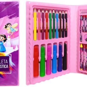 Maleta para Colorir de Unicórnio Princesas Estojo com Desenhos Lápis Canetinha Giz 40 peças Kit Escolar Infantil