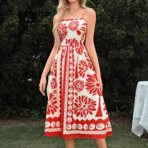 Lovito Vestido com estampa tribal boho e babados para mulheres LBL17603